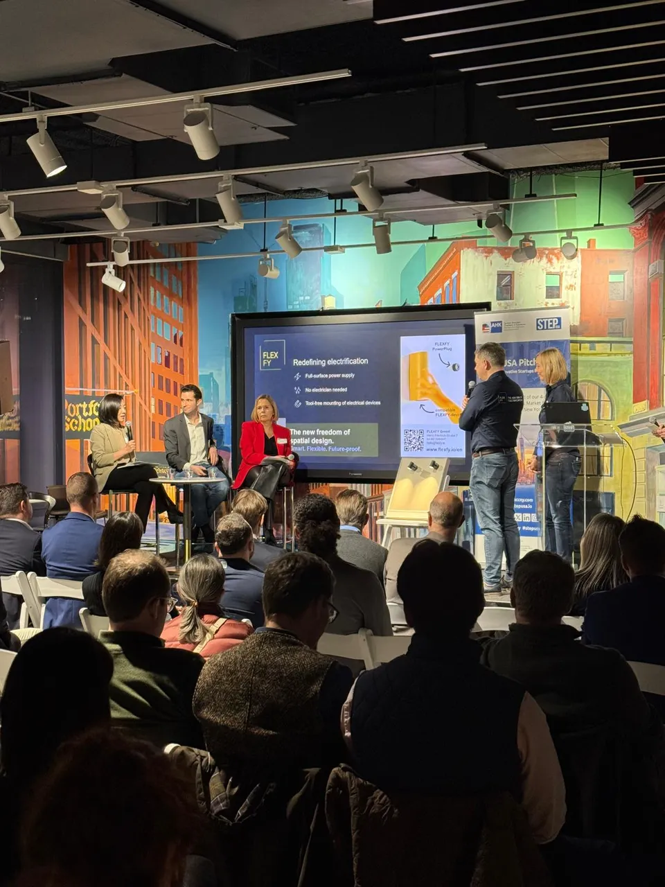 Am 5. November 2025 durften wir das FLEXFY-System im Rahmen der Pitch Night im World Trade Center 7 präsentieren: vor amerikanischen Investoren, Gründer:innen und Vertreter:innen aus der New Yorker Tech-Szene. Gemeinsam mit neun weiteren Start-ups aus Niedersachsen und Hessen standen wir auf der Bühne und hatten unseren Demonstrator live dabei. Der Moment, in dem sich unsere Leuchte magnetisch an die Wand setzte und ohne Kabel, ohne Bohrer und ohne Elektriker aufleuchtete, ließ sich im Raum spüren: Neugier und Staunen zugleich. Viele Gespräche drehten sich anschließend um genau diesen Moment - um den „FLEXFY Magic Moment“, wie ein Gast ihn nannte.